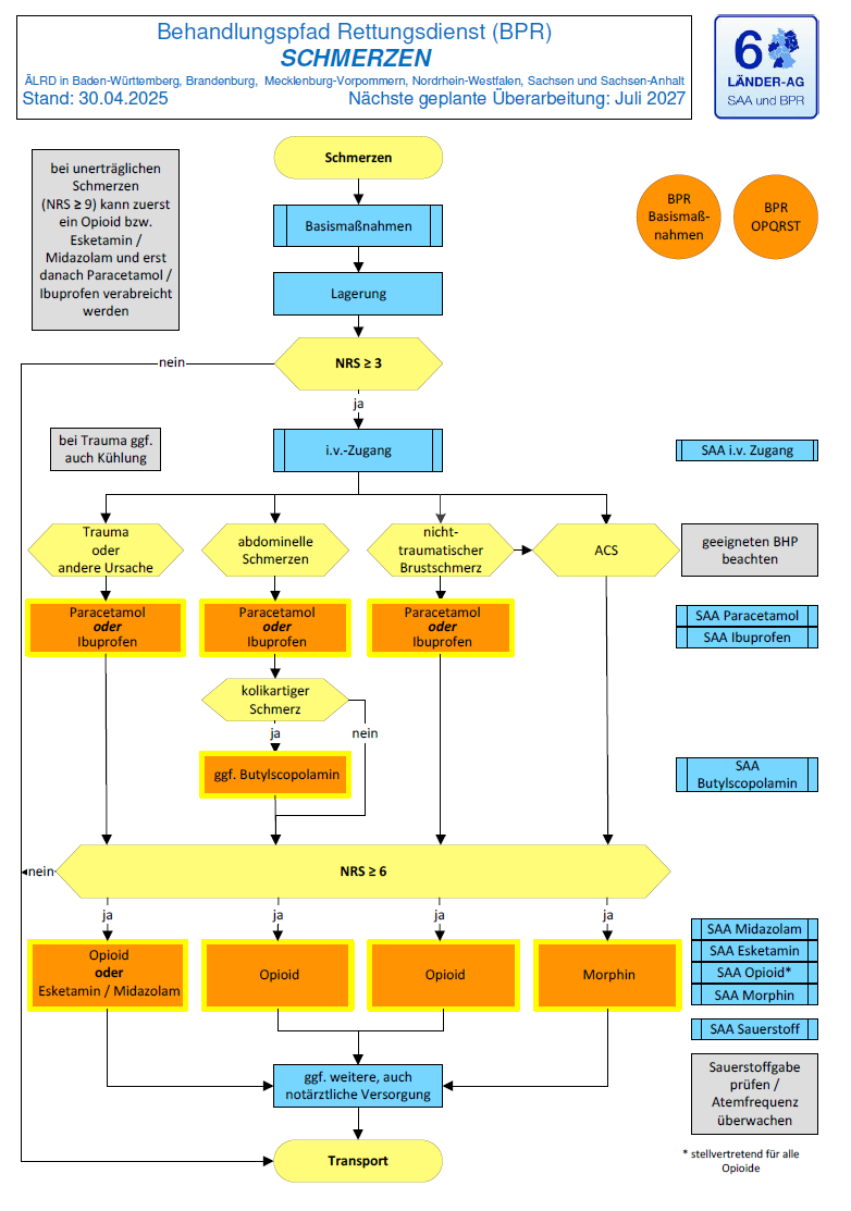 Der grundsätzliche Aufbau des Schmerz-BPR aus der SAA/BPR 2025 bleibt erhalten, wird aber durch eine zusätzliche, klar geregelte Therapieoption ergänzt. Grundlage dafür ist die neu ausgearbeitete SAA Metamizol mit definierten Indikationen, Kontraindikationen, Dosierung und Aufklärungspflichten.